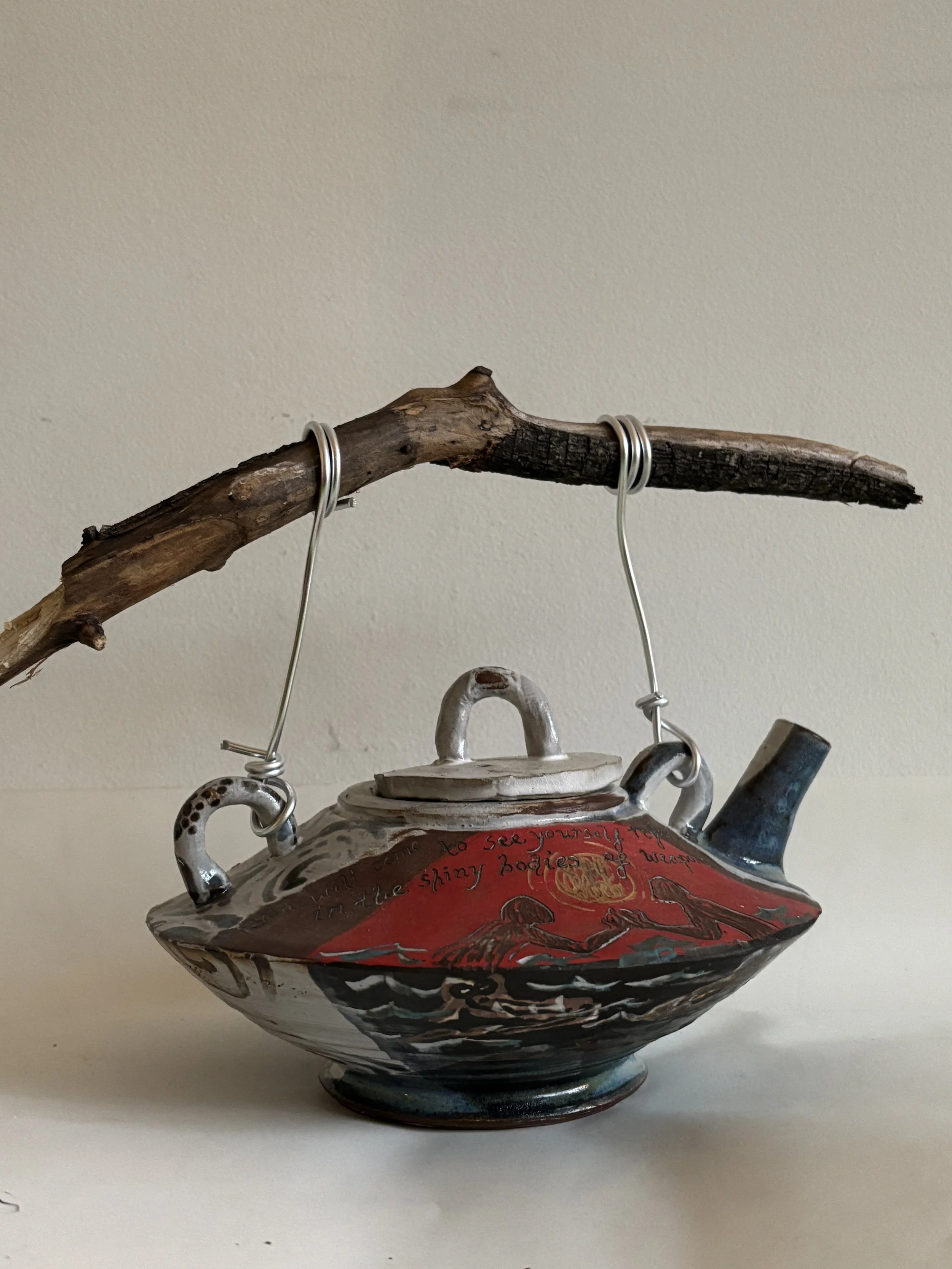 The Sacred and Mundane Ritual of Becoming Yourself. Ceramic, string, wood, and wire. 2022